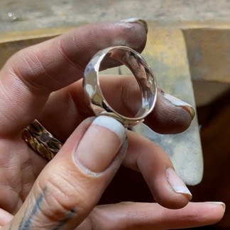 He requested a hammered effect. So I got to it. Starting with a court shaped band.